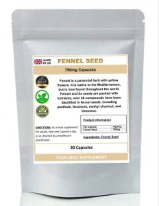 Fennel Seed Capsules 750mg 100% pure no additives (High Strength)